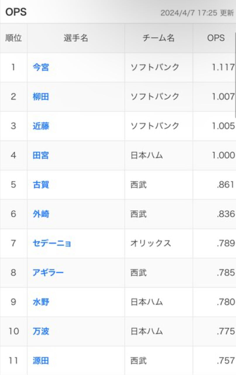 この時期に.800以上がこれしかいないって打低過ぎじゃない?