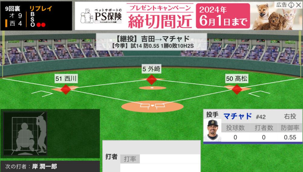 380:西4-9オ(9回裏) 24/05/24(金) 21:37:25 ID:7ZNd