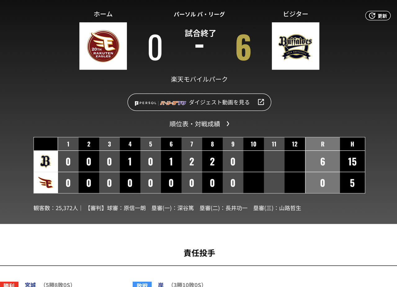 序盤に便秘打線をみせつけて宮城くんさんにも気合をいれるぬかりのなさやったな