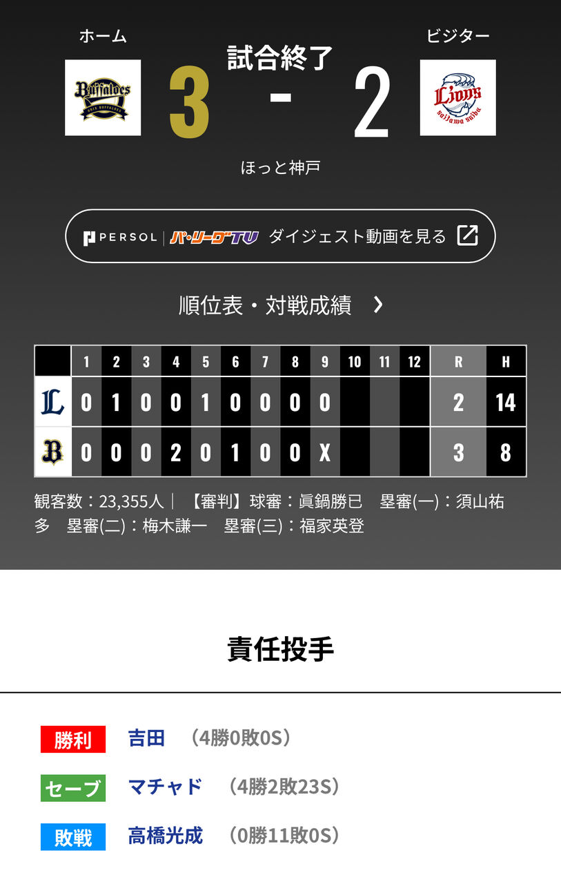 オリ?3位と5.5ゲーム差です。 CSに間に合いますか?