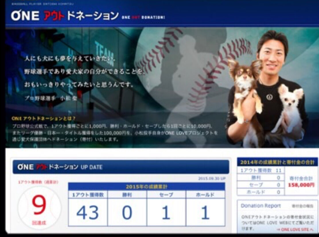 小松聖(元オリックス)は2011年から2016年(引退)まで、「ONEアウトドネーション」として