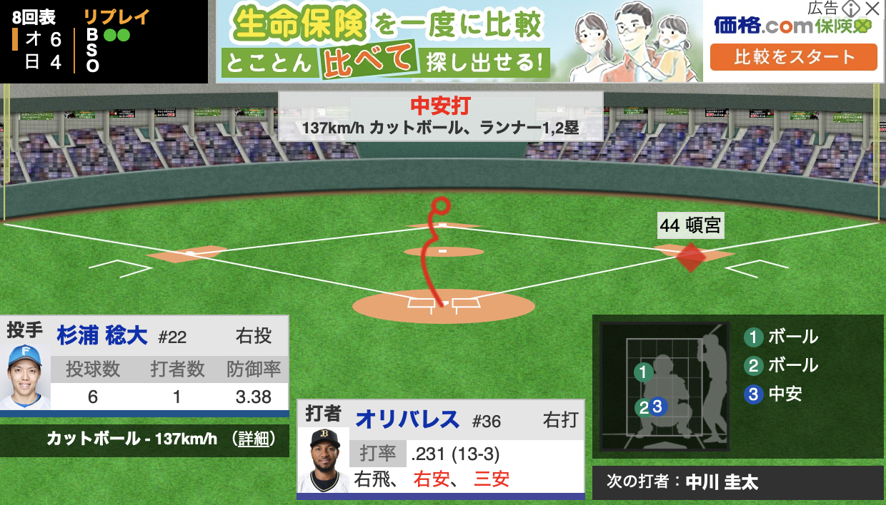 オリバレスは昨日もそうだったけど詰まった打球多いな