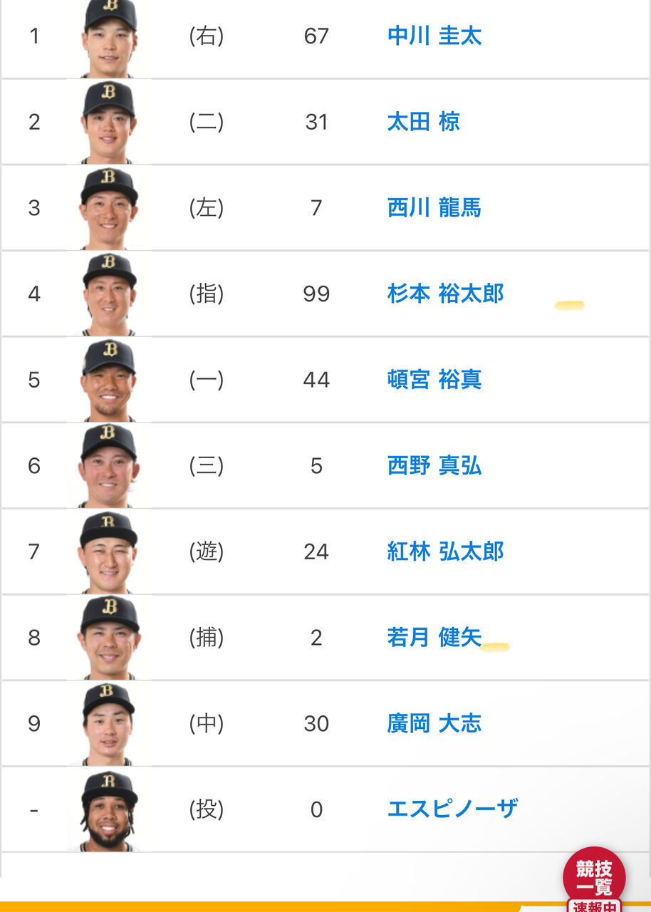 うおおお紅林って思ったらセンター廣岡で笑った