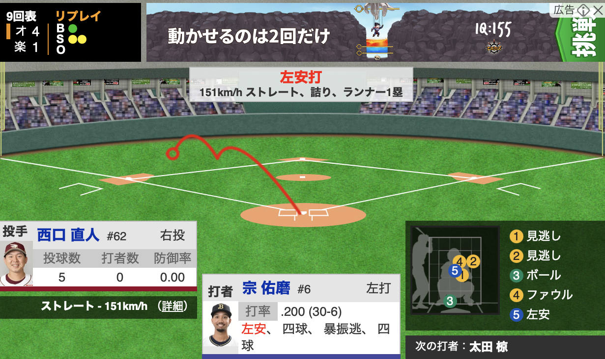 40: 楽1-4オ(9回表) 25/04/11(金) 21:09:55 ID:IY8K