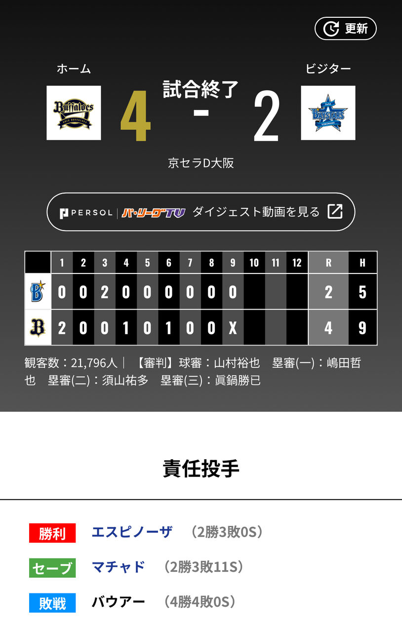 これも全てオリクが誇る投手陣の頑張りのおかげやで