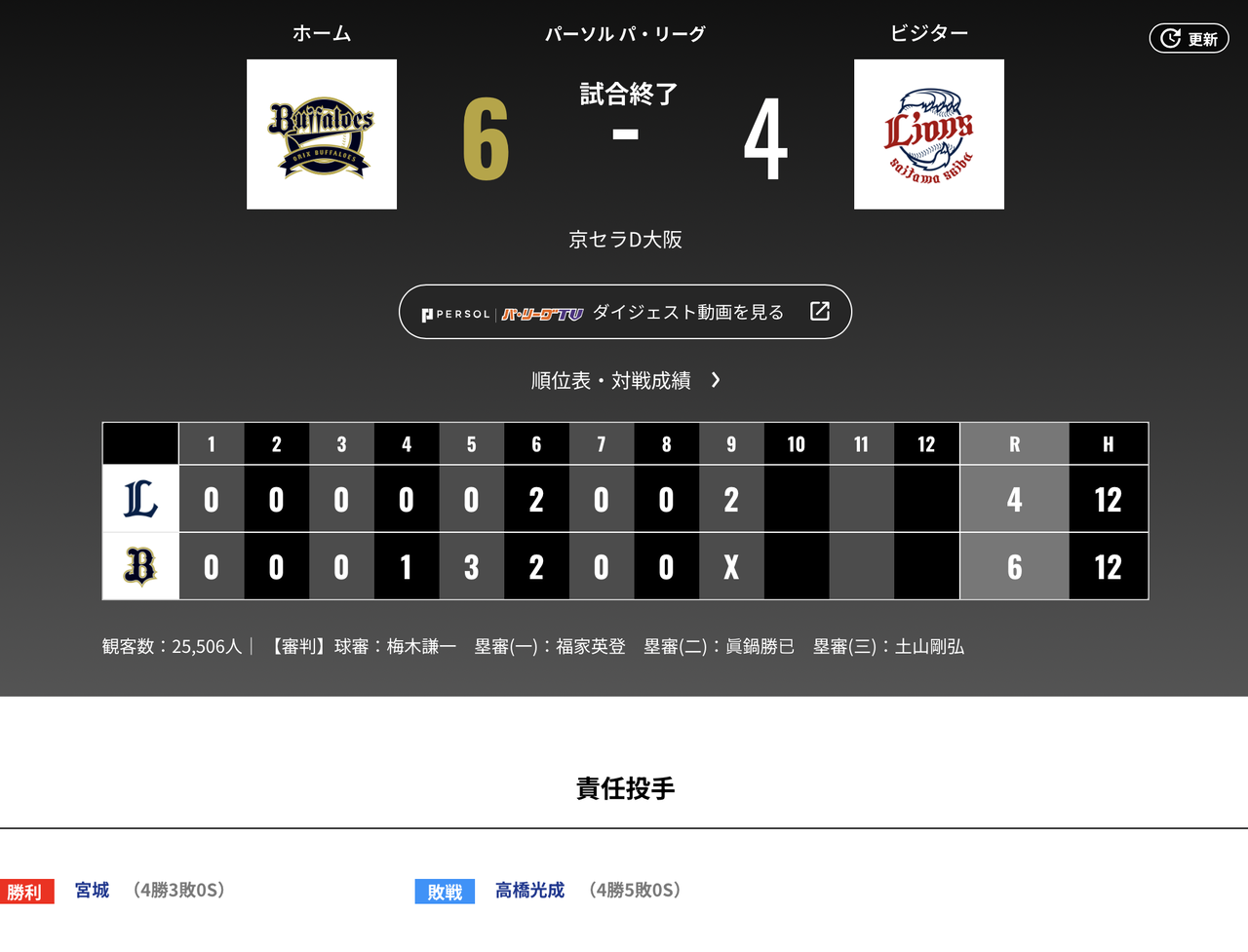 外崎のバント失敗が今日のターニングポイントやったね