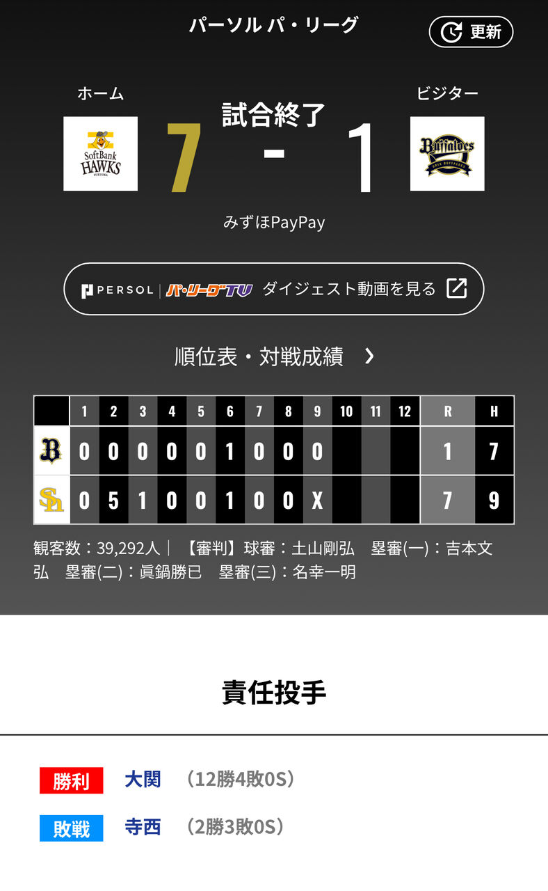 まあしかしソフトバンク戦は色んな意味でストレス溜まるな